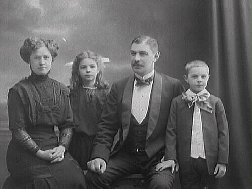 Köpman Oscar Pehrson med frun Ellen och barnen Greta och Håkan. (Se även bild MR2_1217 och 1222)