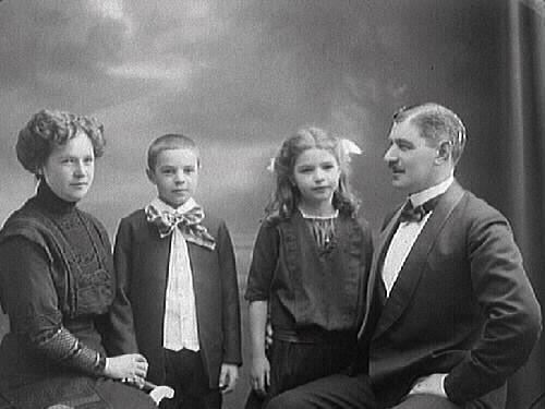 Familjebild. Ateljéfoto av köpman Oscar Pehrson med fru Ellen, sonen Håkan och dottern Greta. (Se även bild MR2_1222)