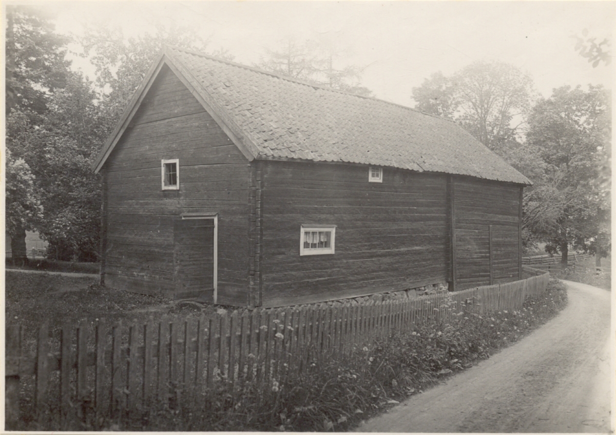 Magasinbyggnad strax nedanför mangården på gård i Björka. Partiet till höger blev senare tillskiftat