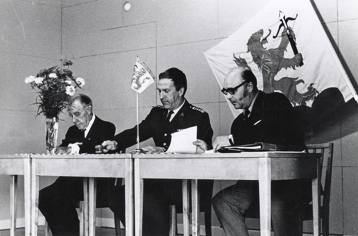 Kamratföreningens årsmöte. Fr.v.: advokat Harald Bünger, överste Lennart Löfgren samt kapten Erik Lindqvist.