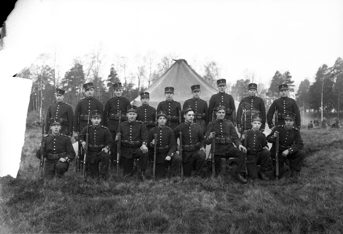 Foto av en grupp militärer framför ett tält.