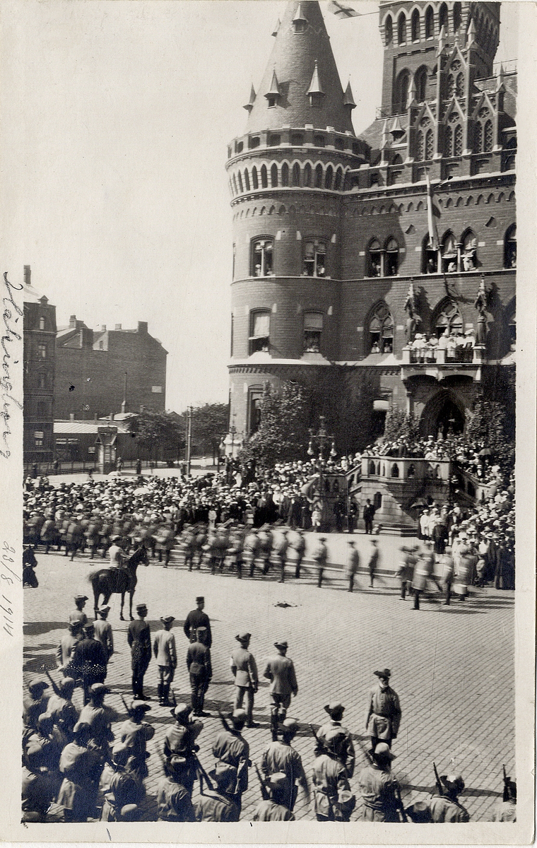 Uppställning framför rådhuset i Helsingborg, 23/8 1914.