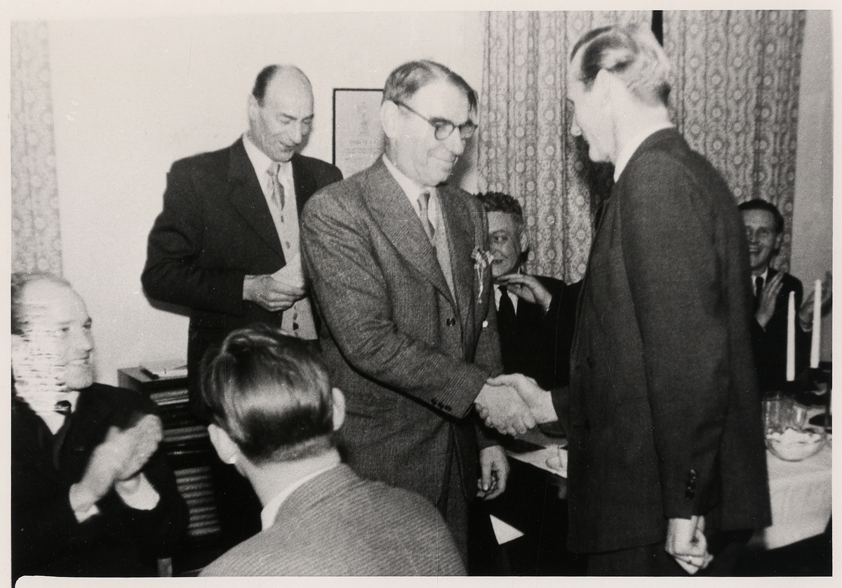 Stadsfiskal Erik Sandelius blir tackad av Börje Skog.