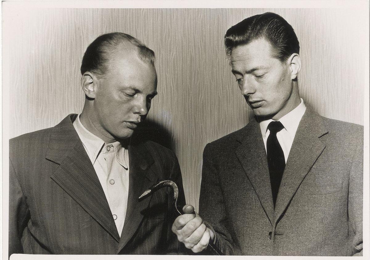 Konstaplarna Bo Nyqvist och Åke Rydén med en kofot.