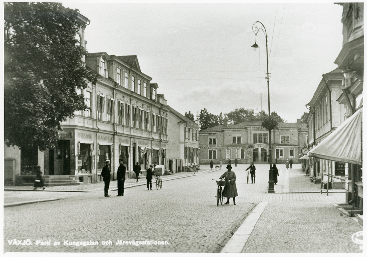 Växjö. Parti av Kungsgatan och järnvägsstationen, ca 1935.