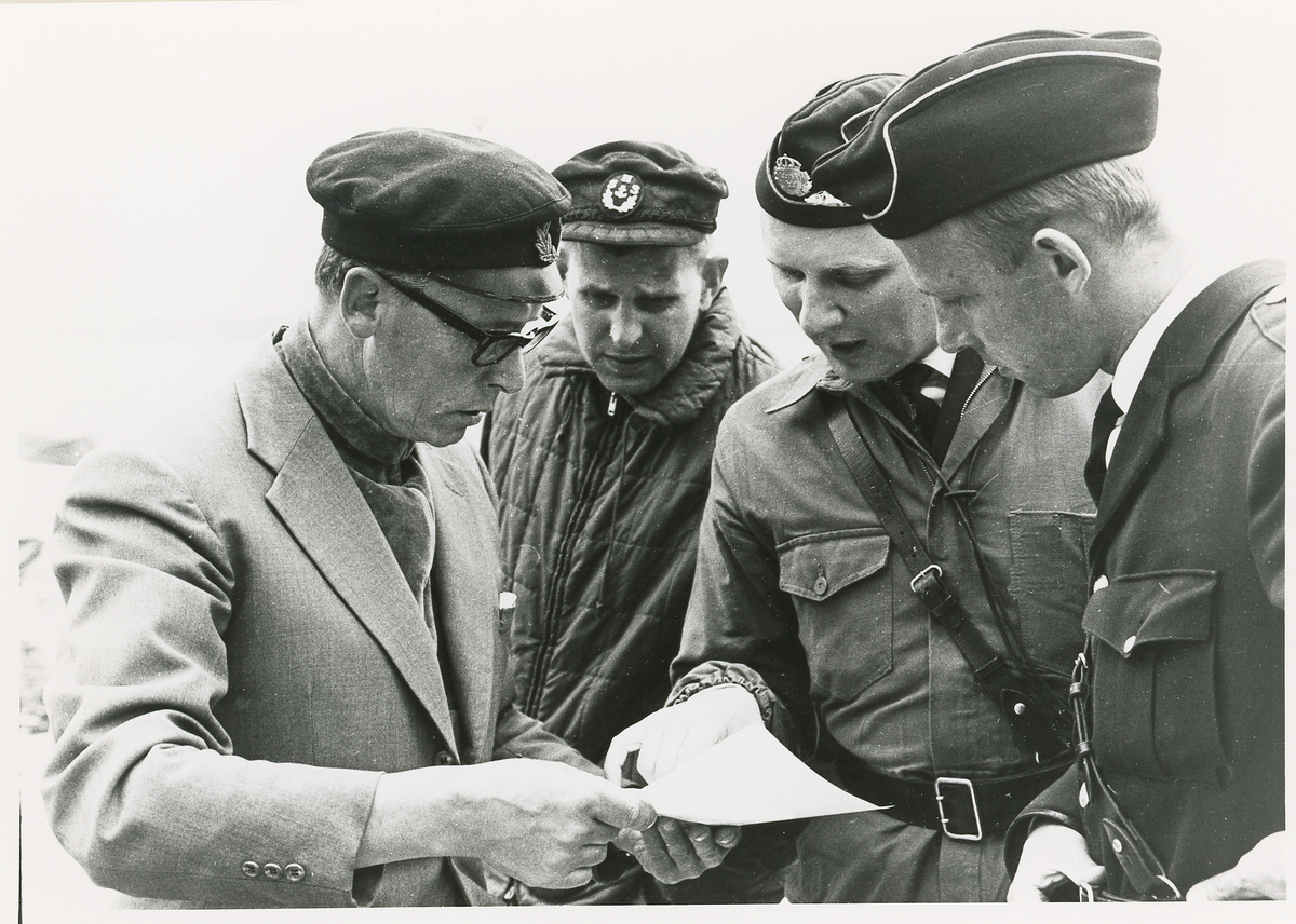 Fr.v.: Åke Rudolfsson (tandtekniker), Sven-Åke Andersson (kommunalråd), Roland Blohm och Lennart Karlsson diskuterar.