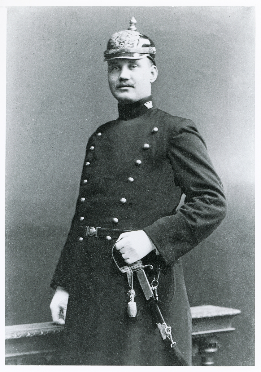 En poliskonstapel i full paraduniform, Karlskrona ca 1910.