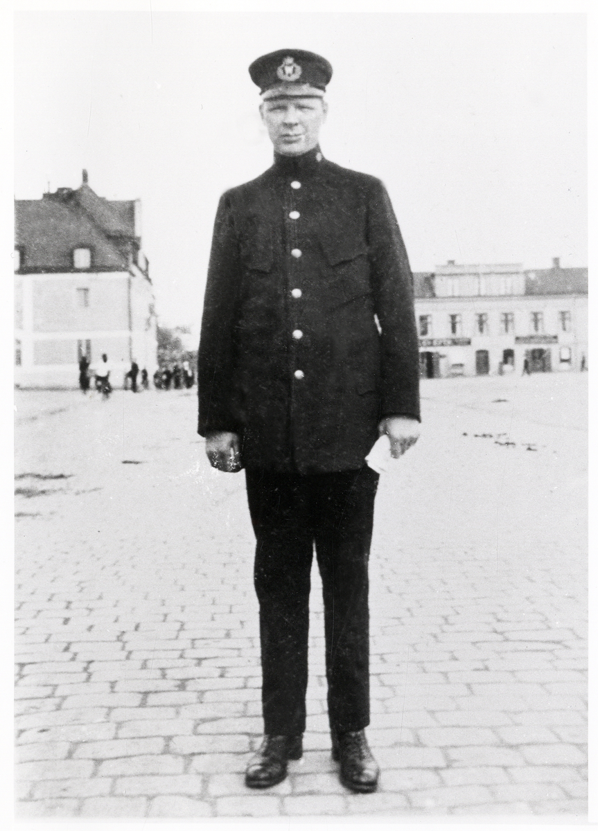 Överkonstapel Manfred Lundin, på stortorget, Växjö, ca 1920-25.
