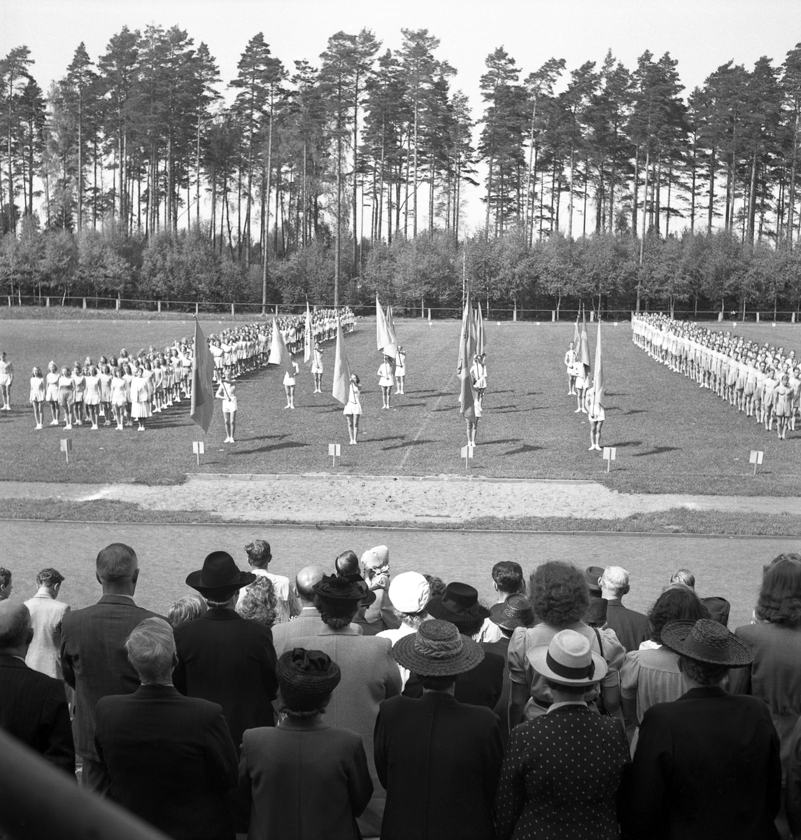 Stor parad på gräsplanen, Värendsvallen. Fotot taget från