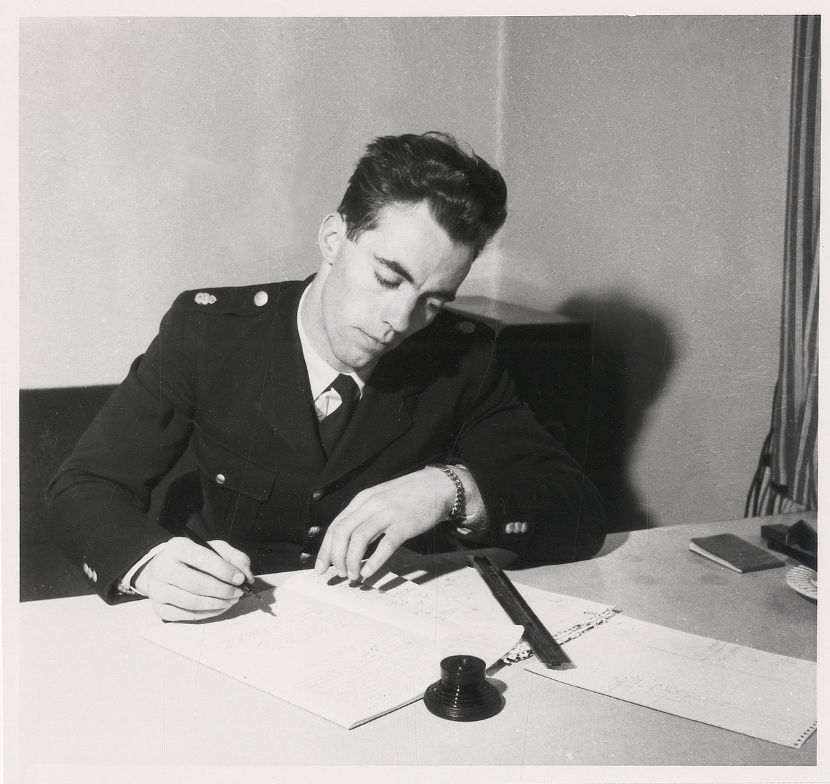 Poliskonstapel Rutger Petersson vid "minnesboken", på polisstationen i Växjö.