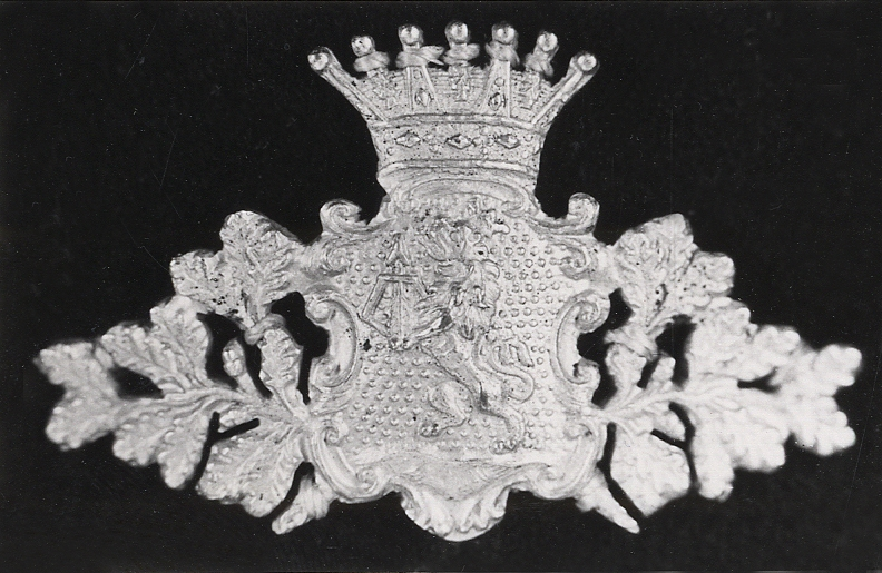 Länsmansmärke i mässing (Smålands landskapsvapen med hertigkrona och ekblad).