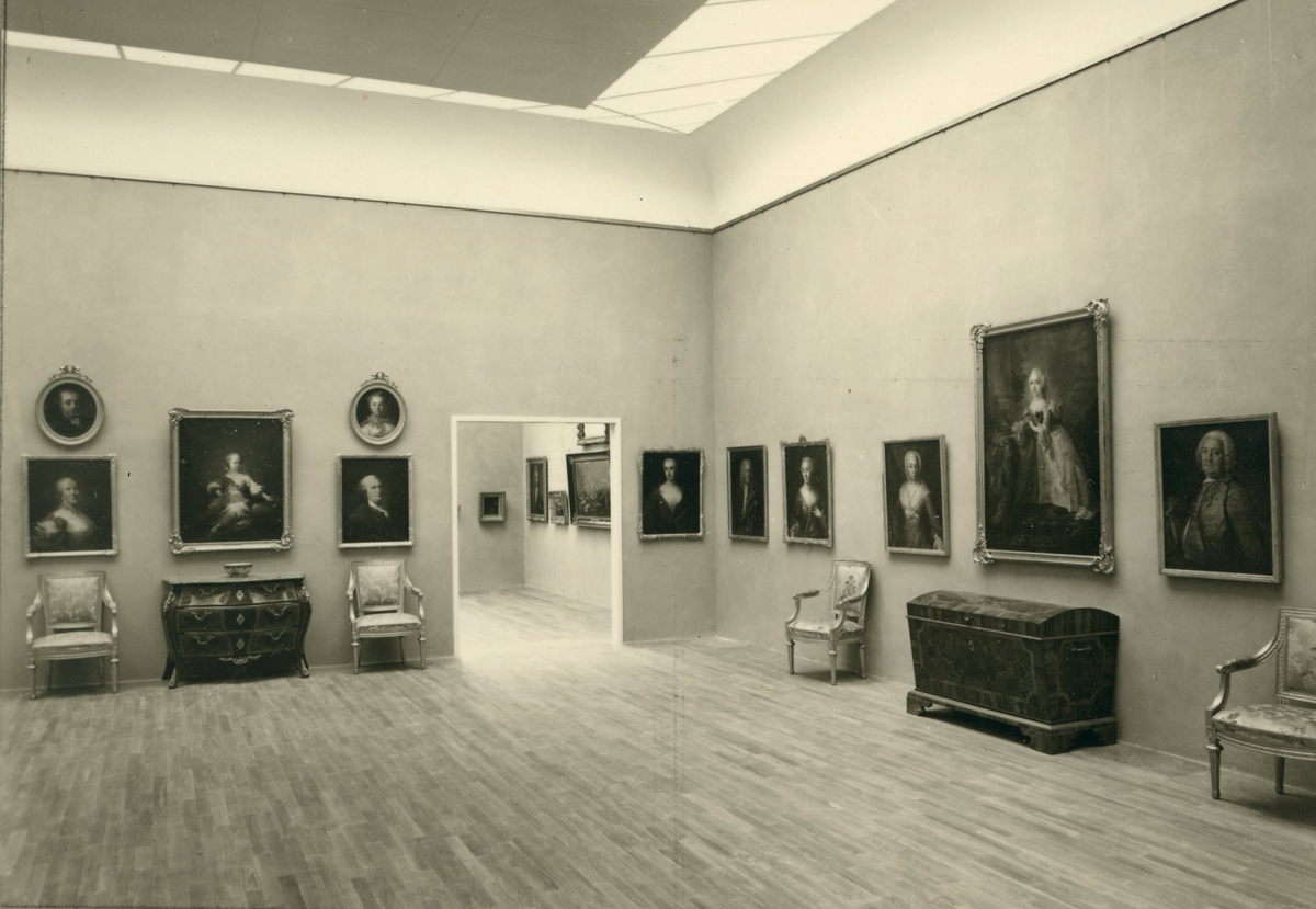 Gävle Museum: 1700-talsmåleri. På väggen över rokokobyrån ett barnporträtt av Isaac Wacklin, flankerad av två porträtt av samme konstnär från år 1756. Däröver två ovala porträtt av Per Krafft d. ä.