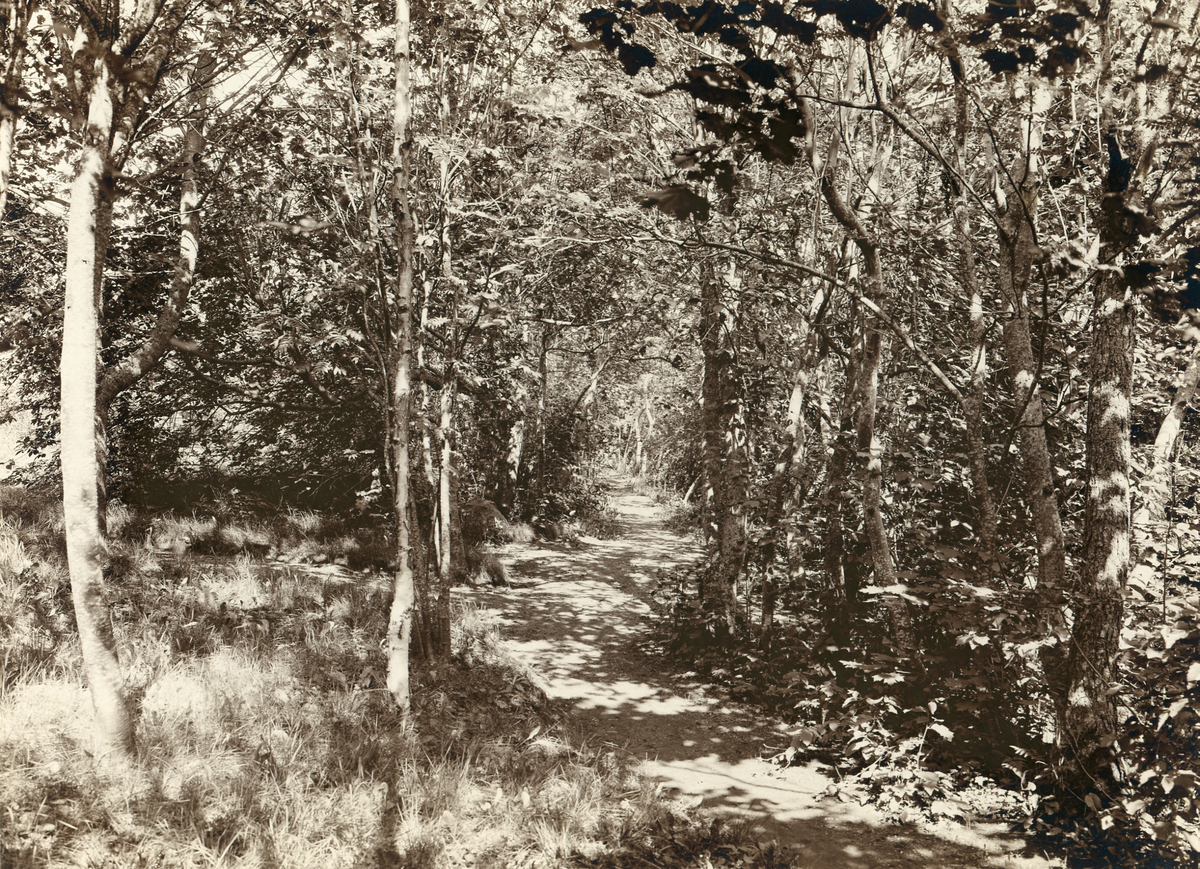 Bilder av släkten Brodin från hemmet på Norrlandet. Idyllisk stig som kantas av lövskog.