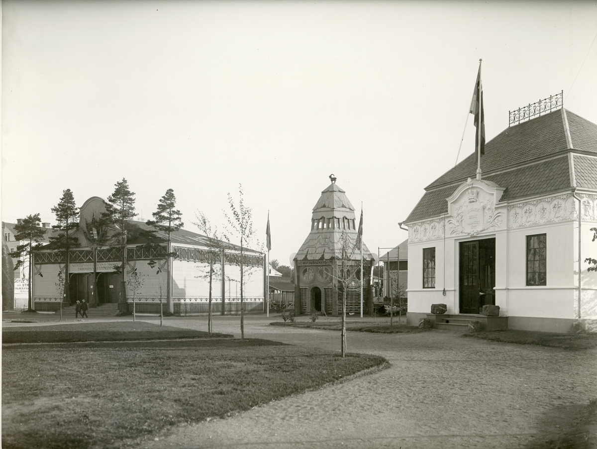 Gefle-utställningen 1901. En Lantbruks-, industri- och slöjdutställning. Utställningarna höll till på Norr där ett järnvägsspår lagts, norrlandsföretag visade sina produkter.