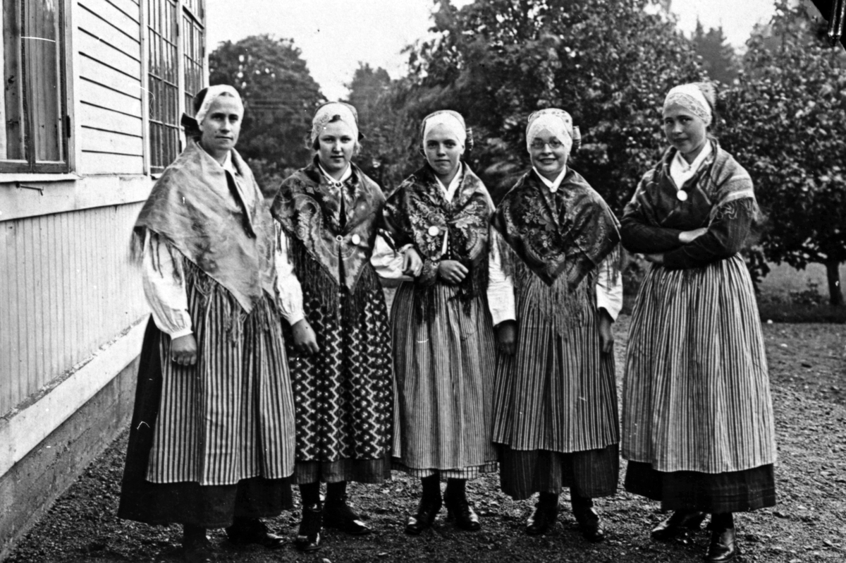 Fem kvinnor i Sorunda dräkt