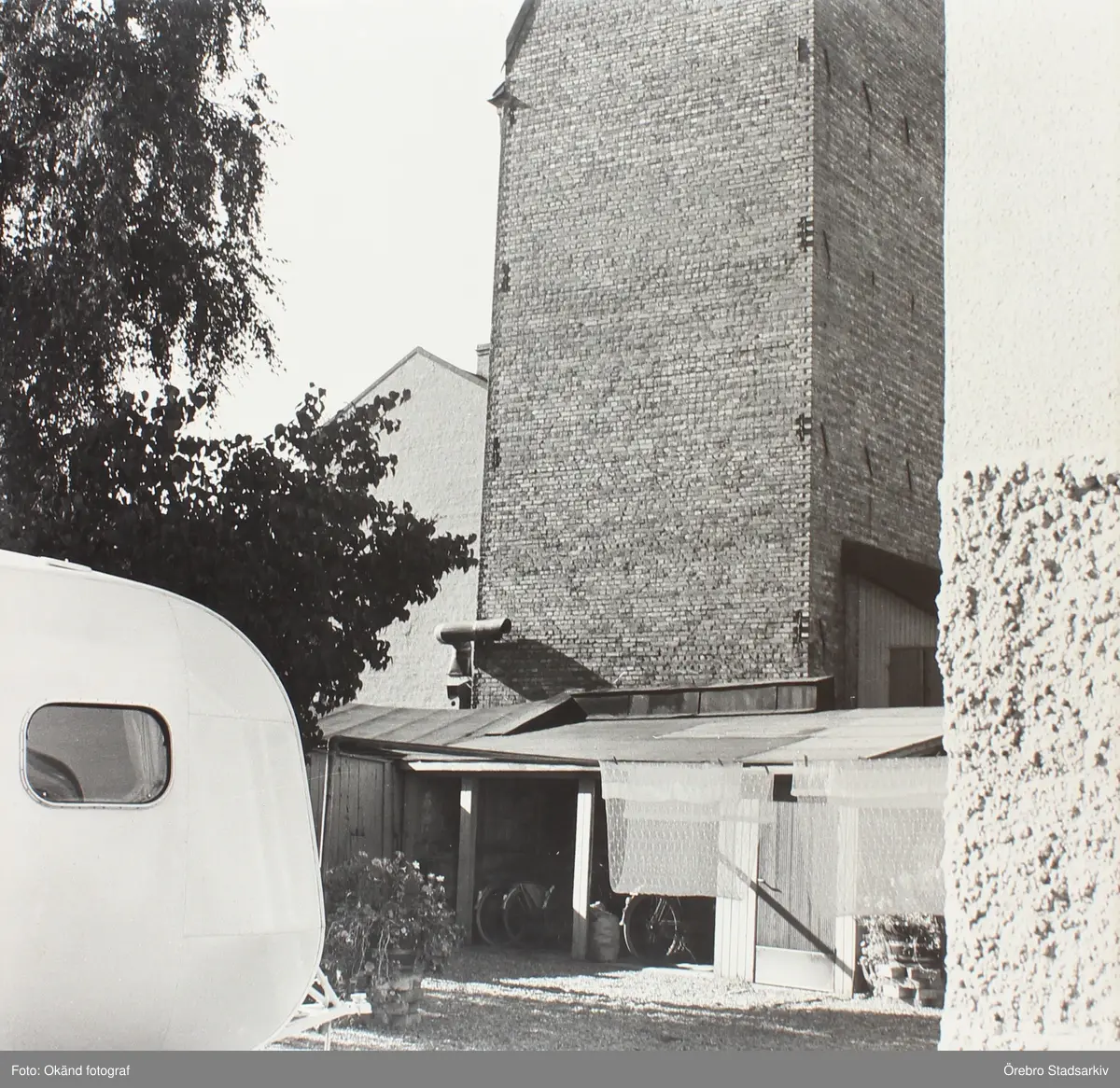 Husvagn parkerad på bakgård, 1970-tal