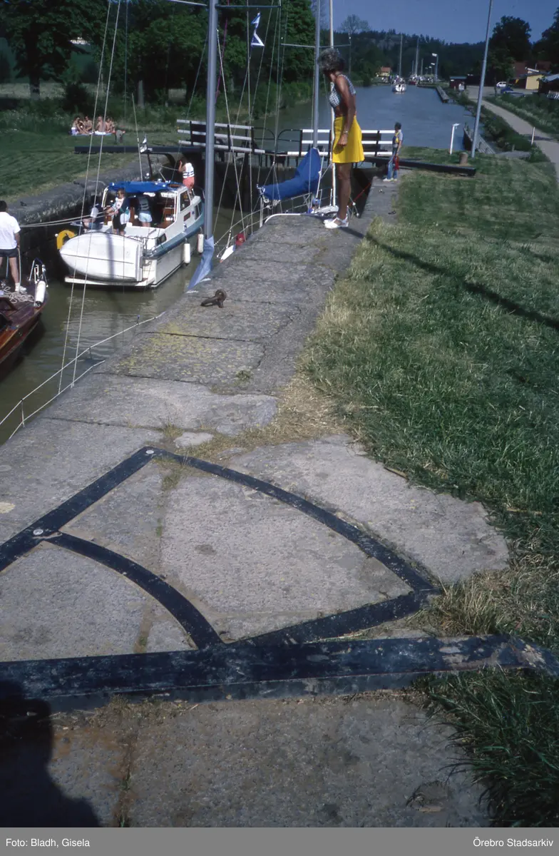 Slussning i Carlsborgs övre sluss på Göta kanal, 1992