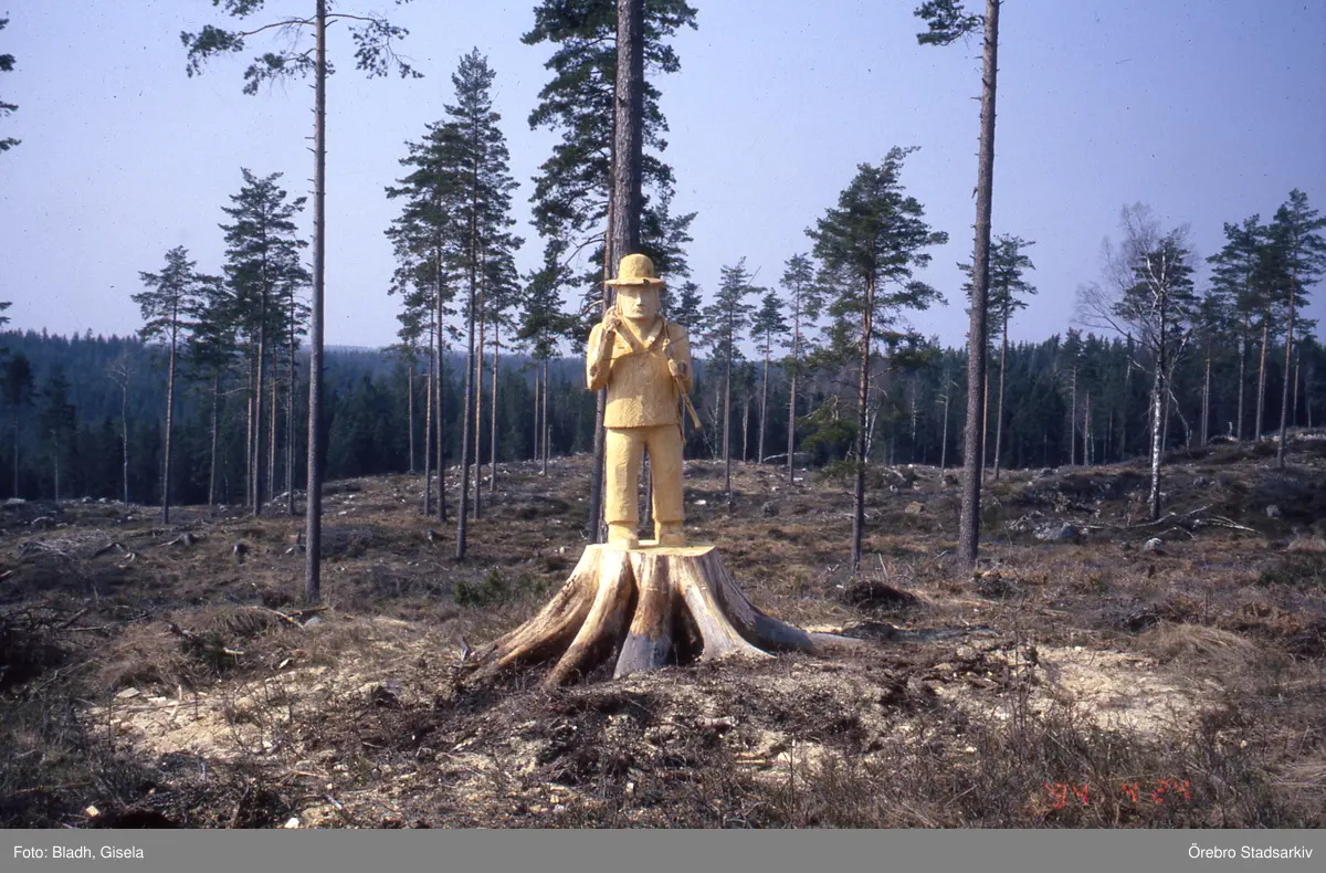 Träskulptur i skogen vid Tomasboda, 1990-tal