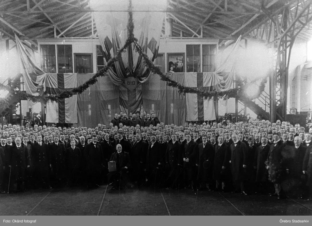 Samling inför invigning av lokverkstaden vid Centralverkstäderna, 1913-03-16