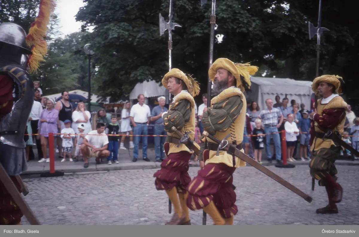 Soldater paraderar i Slottsparken under slottsfestivalen, 1994