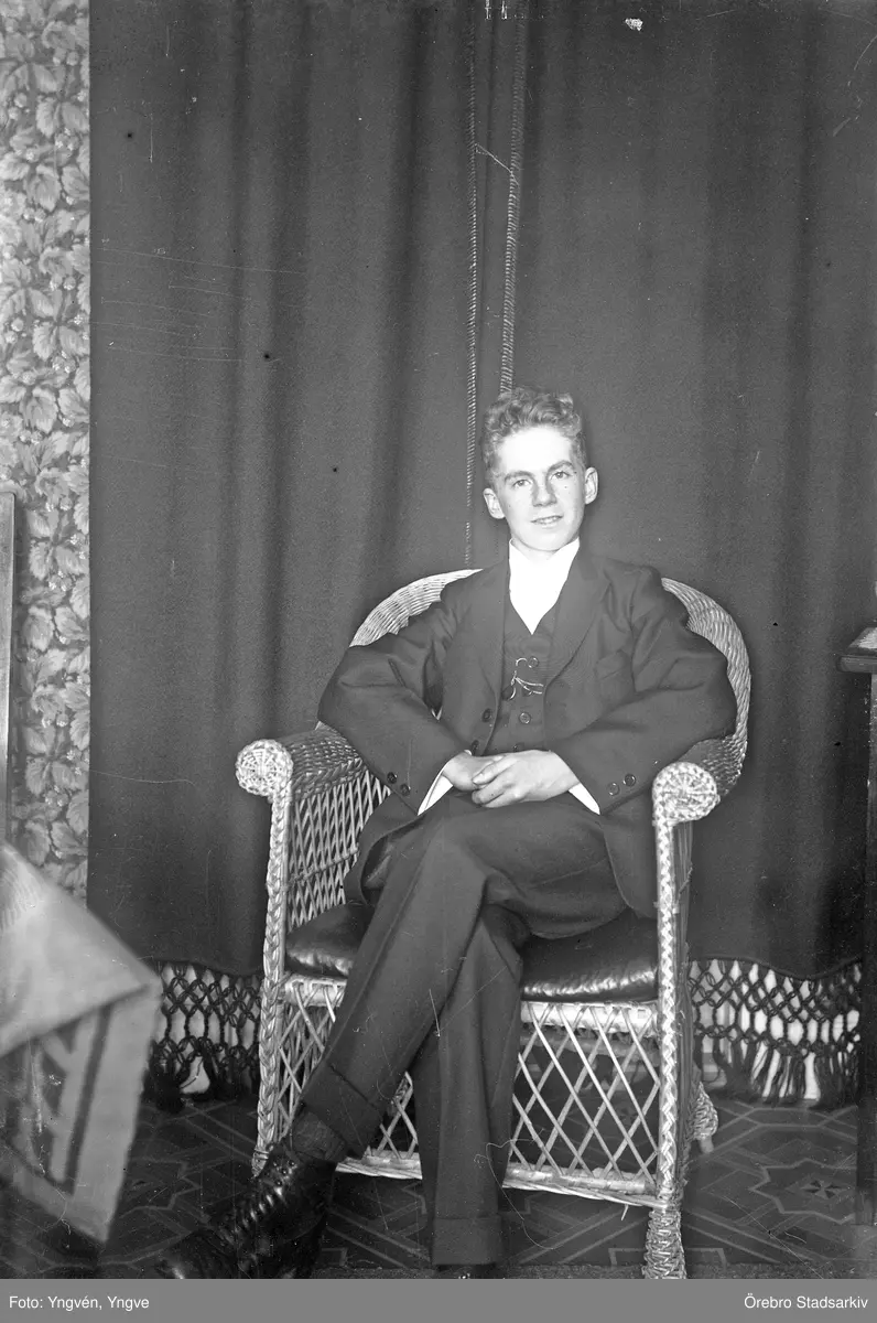 Porträtt av ung man i korgstol, 1920-tal