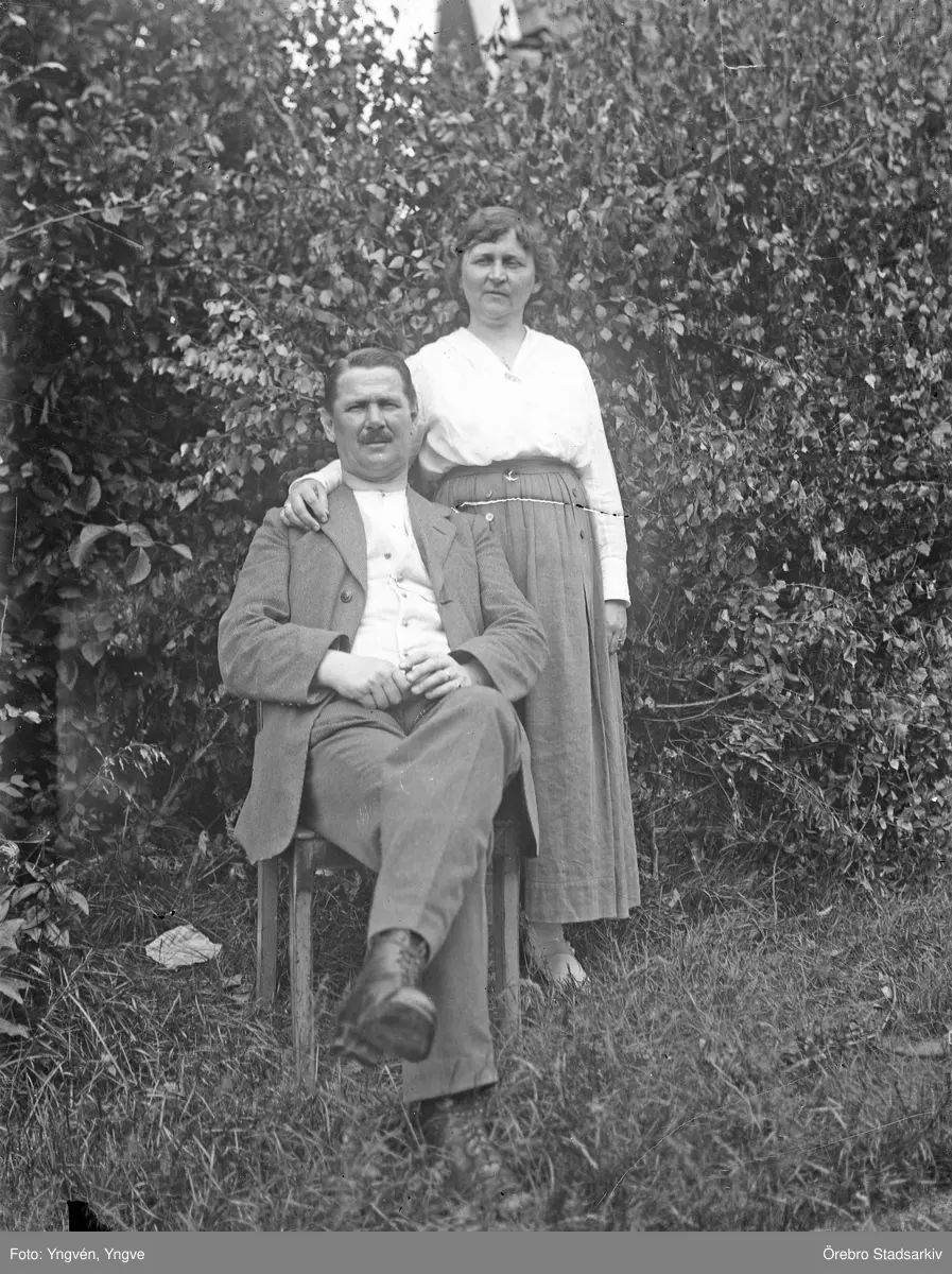 Porträtt av man och kvinna i trädgården, 1920-tal
