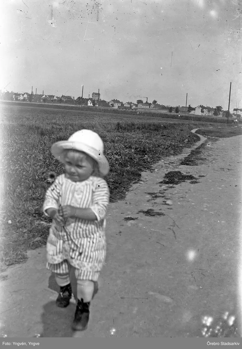 Litet barn på promenad på söder i Örebro, 1920-tal