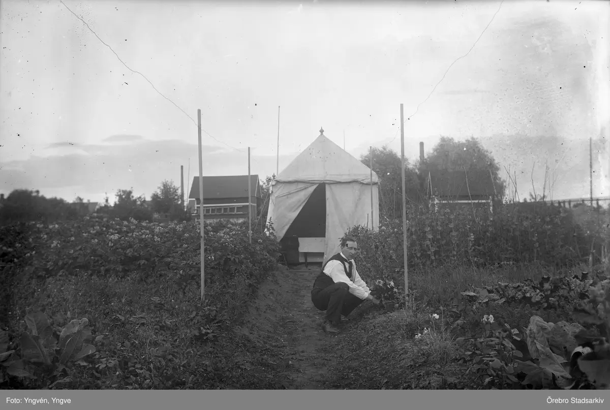 Man i grönsakslandet på sin kolonilott, 1920-tal