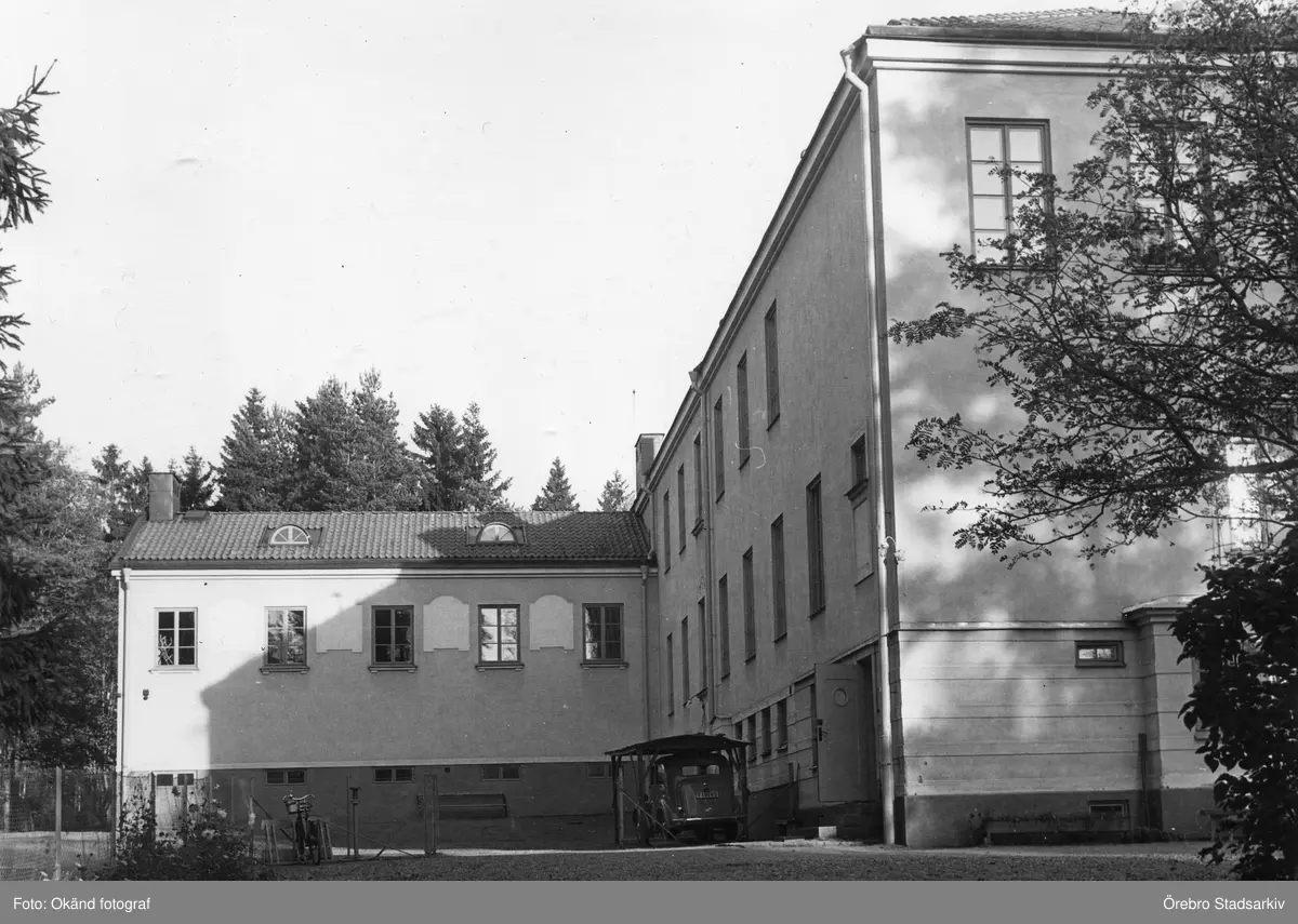 Bil parkerad vid Adolfsbergsskolans entré, 1948