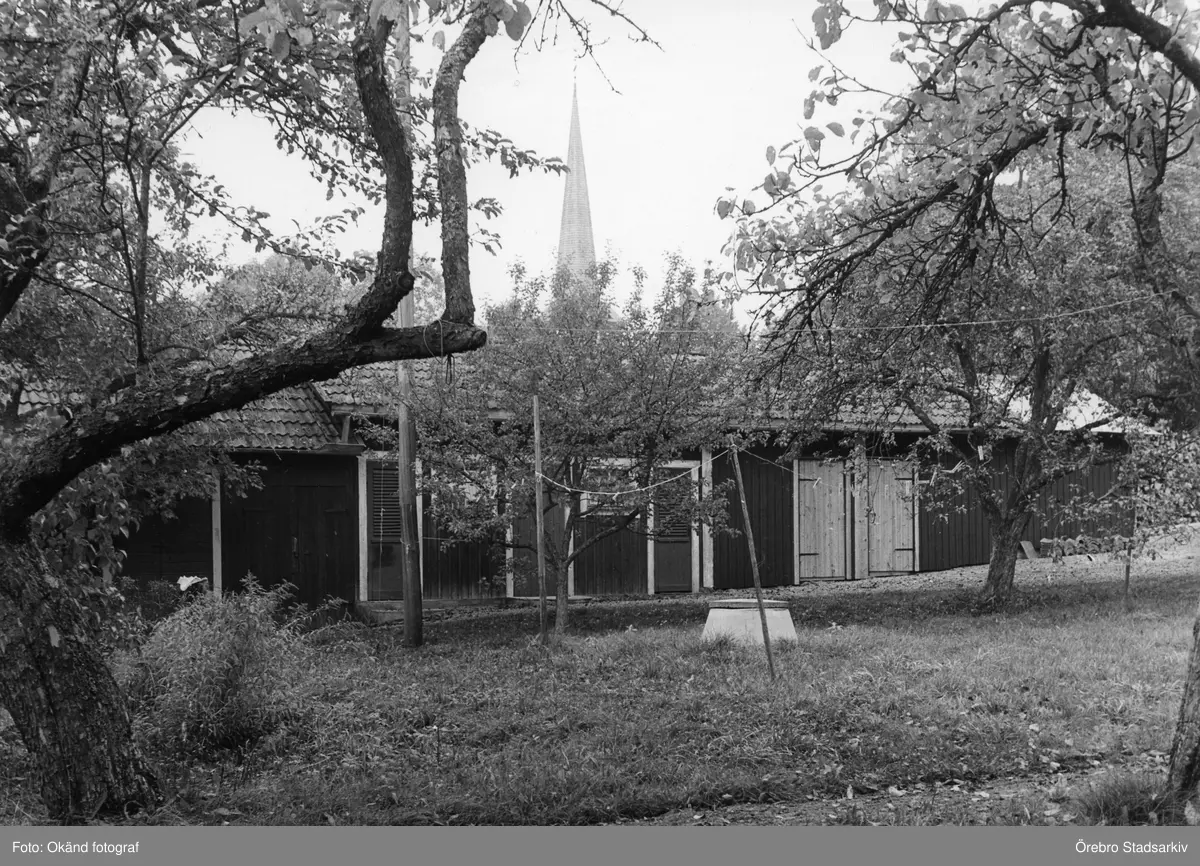 Utedass i uthus vid Ekers skola i Längbro, 1948
