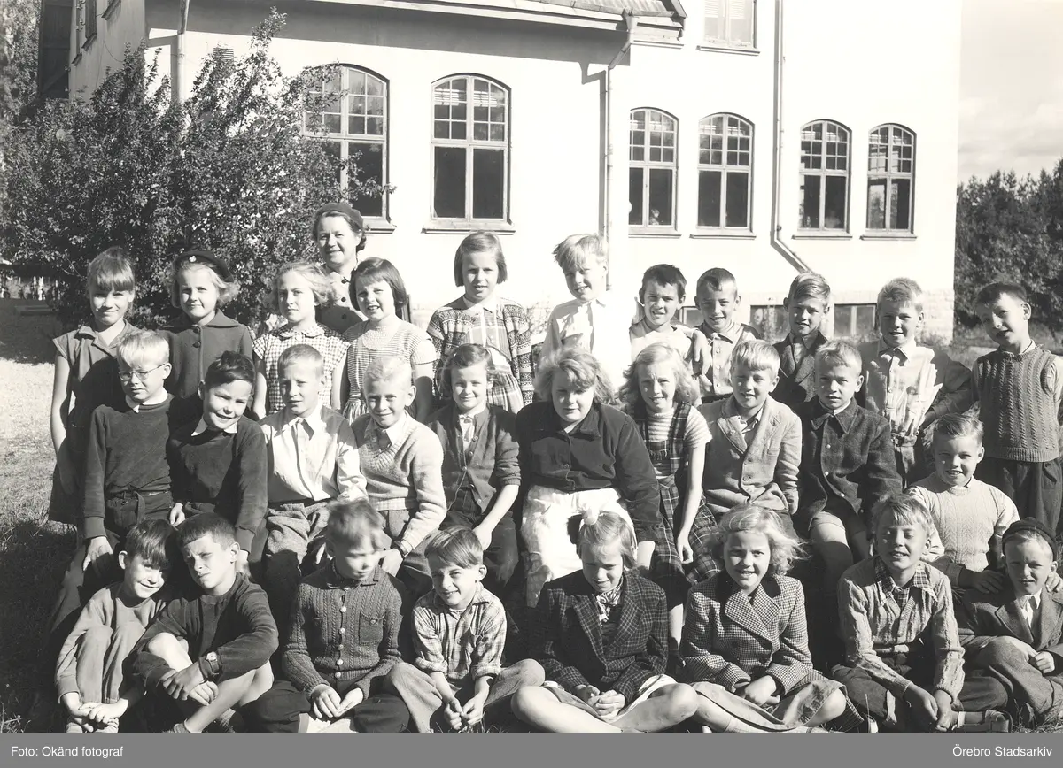 Lärare och elever i Mosjö Kyrkskola, hösten 1954