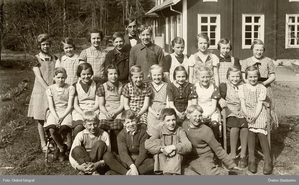 Skolklass framför Alltorps skola, 1930-tal