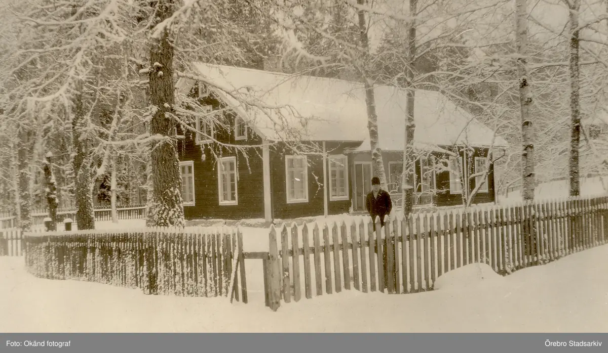 Skolhus och gård med snö vid Alltorps skola, 1920-tal
