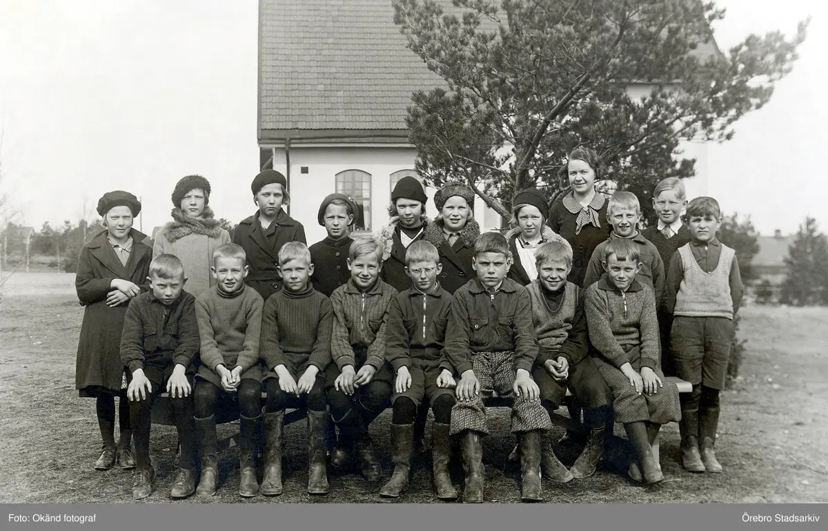 Lärare och elever på gården till på Mosjö kyrkskola, 1931