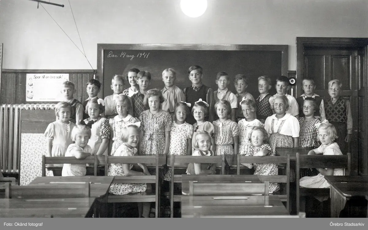 Elever i klassrum i Mosjö kyrkskola, 1941-08-14