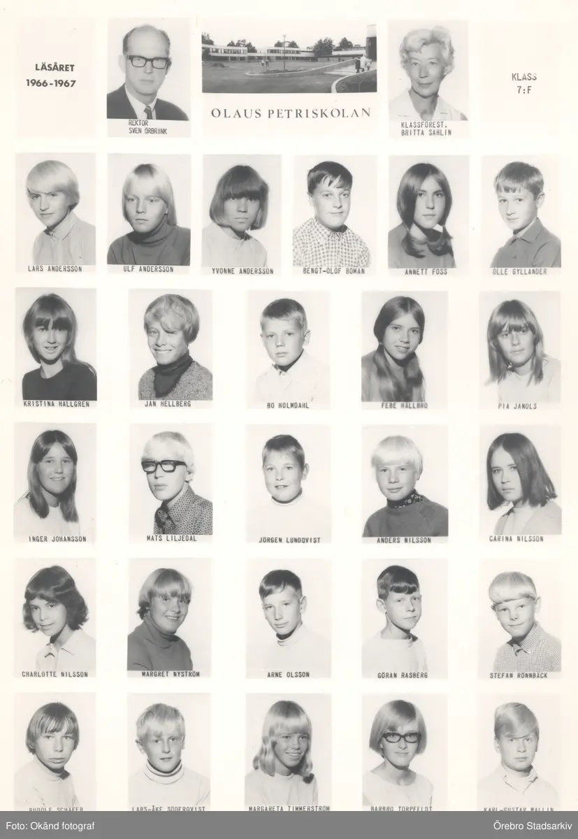 Klass 7F på Olaus Petriskolan, 1966-1967