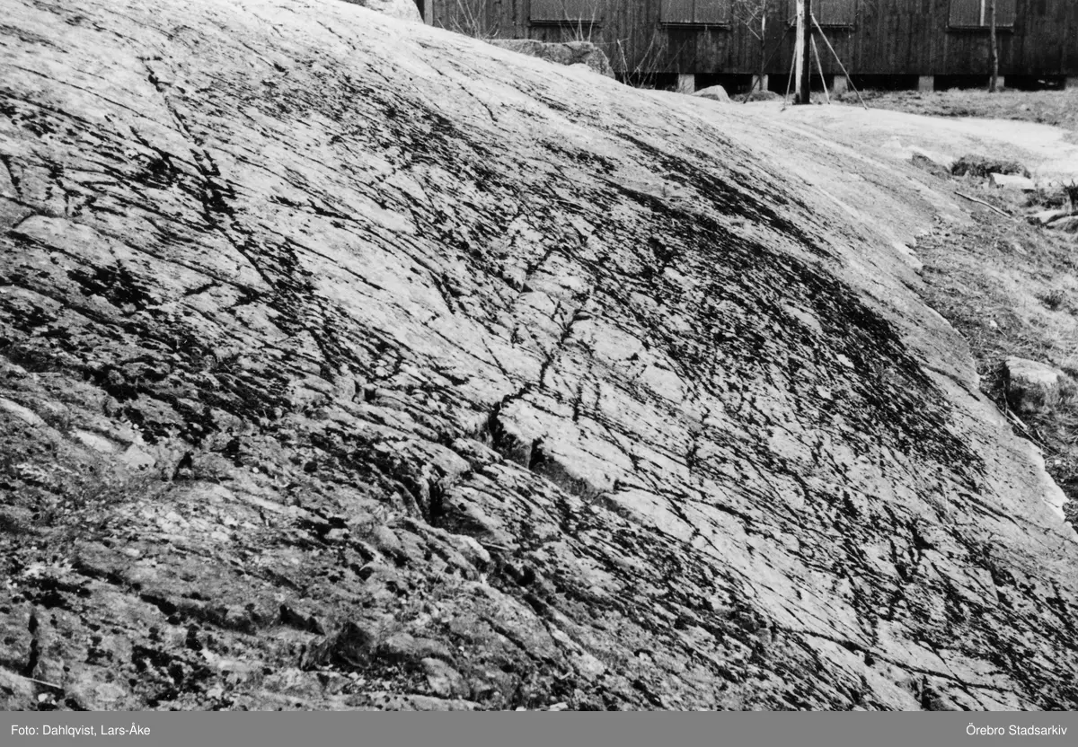 Korsande räfflor på rundhällar på Almbybranten i Sörby i Almby, 1964