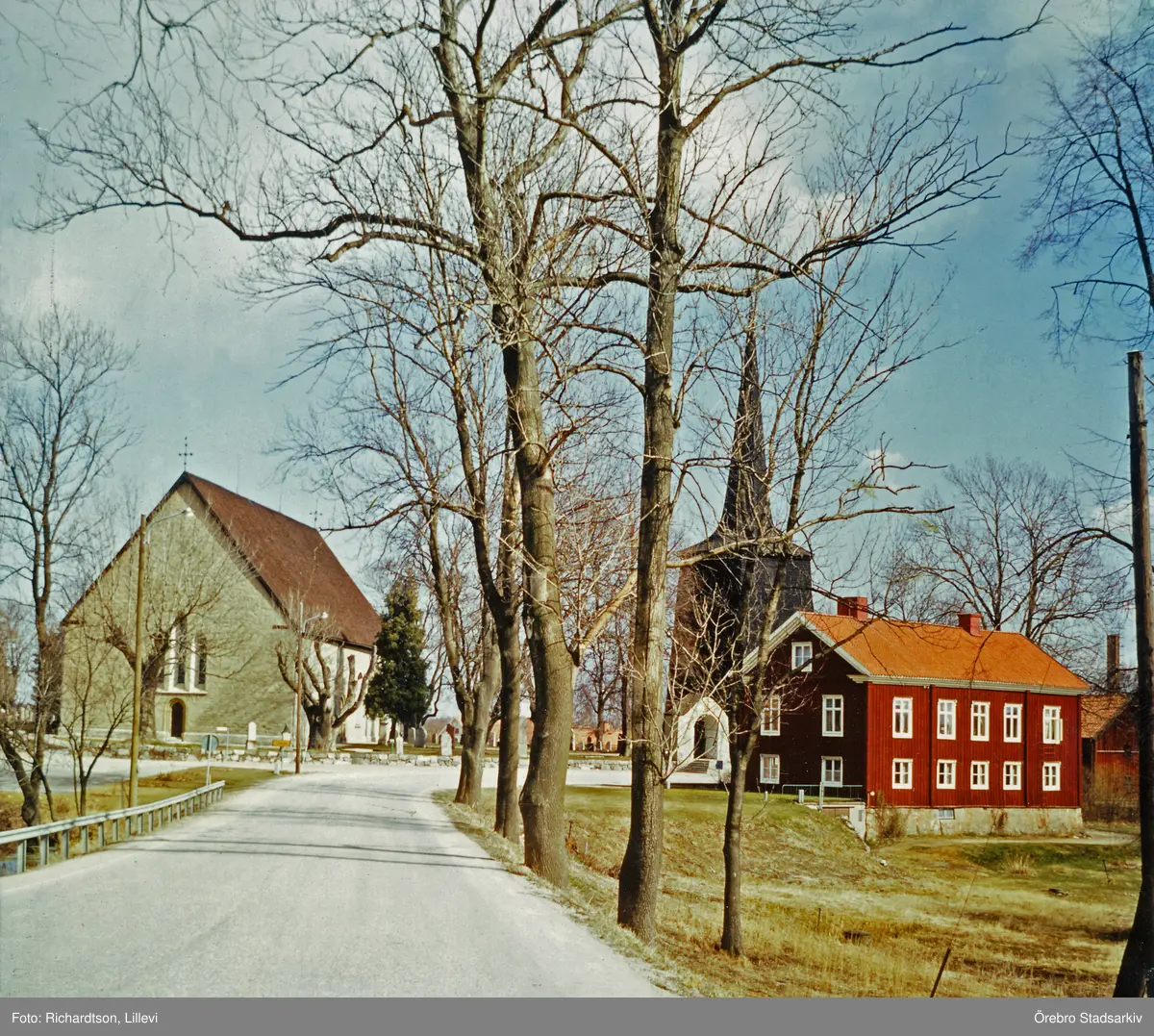 Sköllersta kyrka och försmlingshem, 1975-04-17