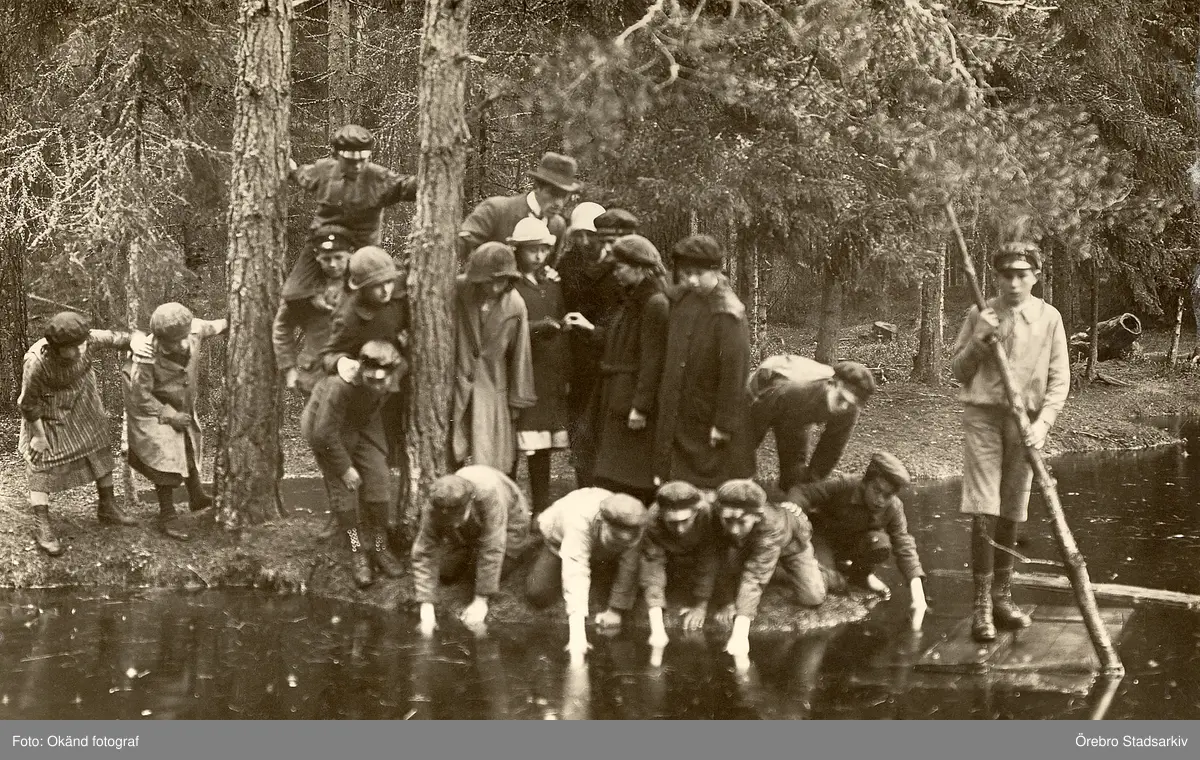Skolklass vid vatten vid Alltorps skola, 1920-tal