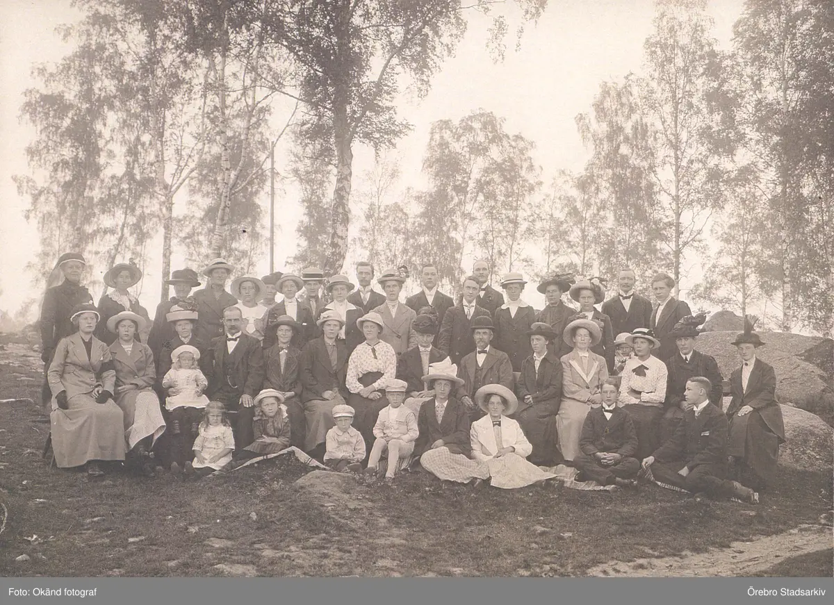 Grupp utanför kapellet i Mamrelund, före 1919