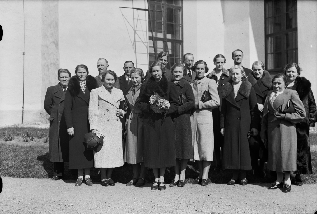 Titel: Grupporträtt utanför Alunda kyrka, Uppland
