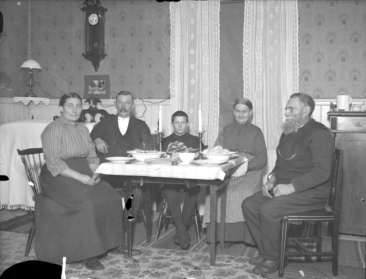 Familjerna Gille och Ström vid dukat bord, Gimogatan, Österbybruk, Uppland