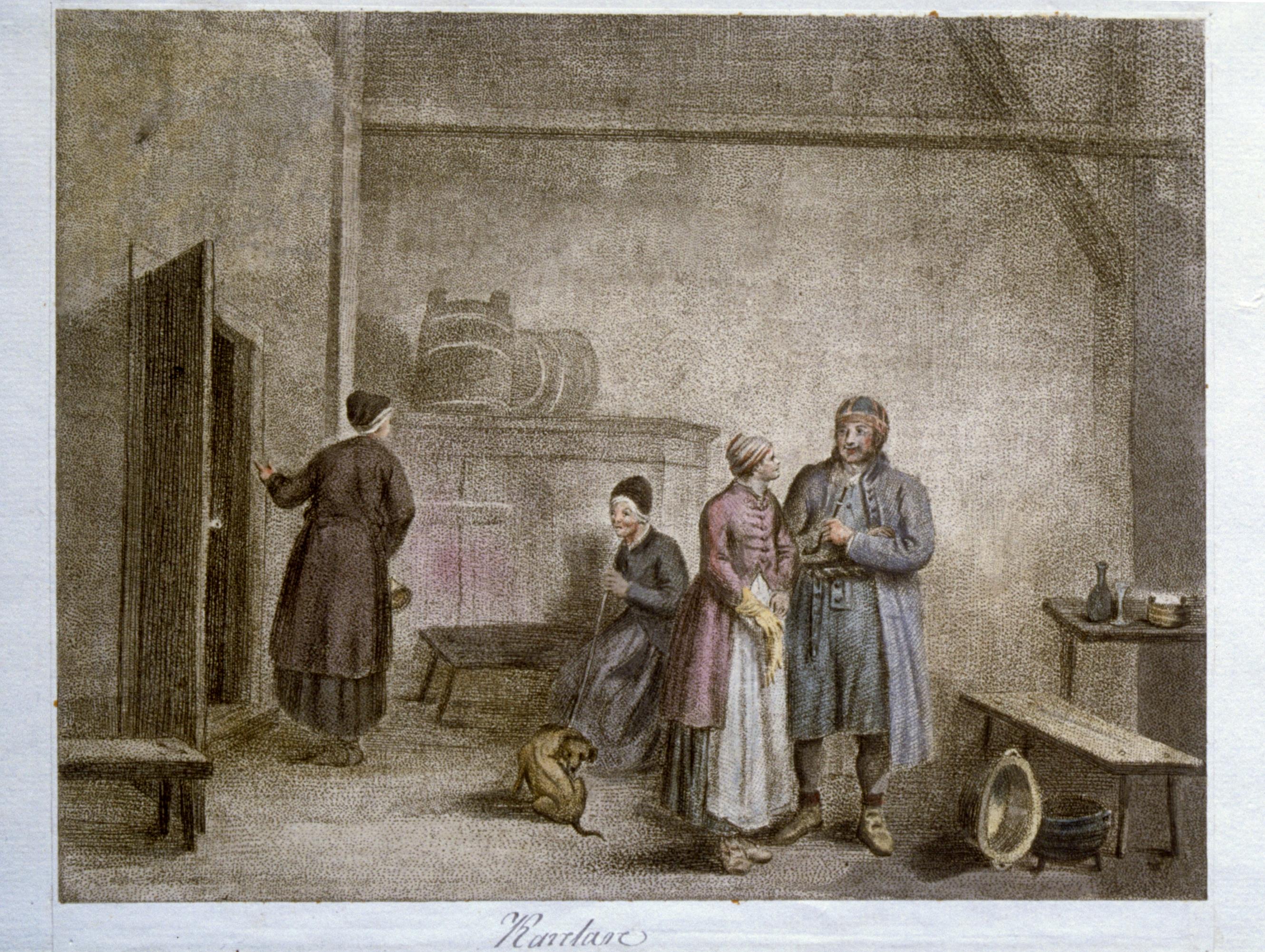Allmoge i Karelen. Akvarellerad punktgravyr av Fredrik Erik Martin efter Elias Martin, fr 1790-talet.
