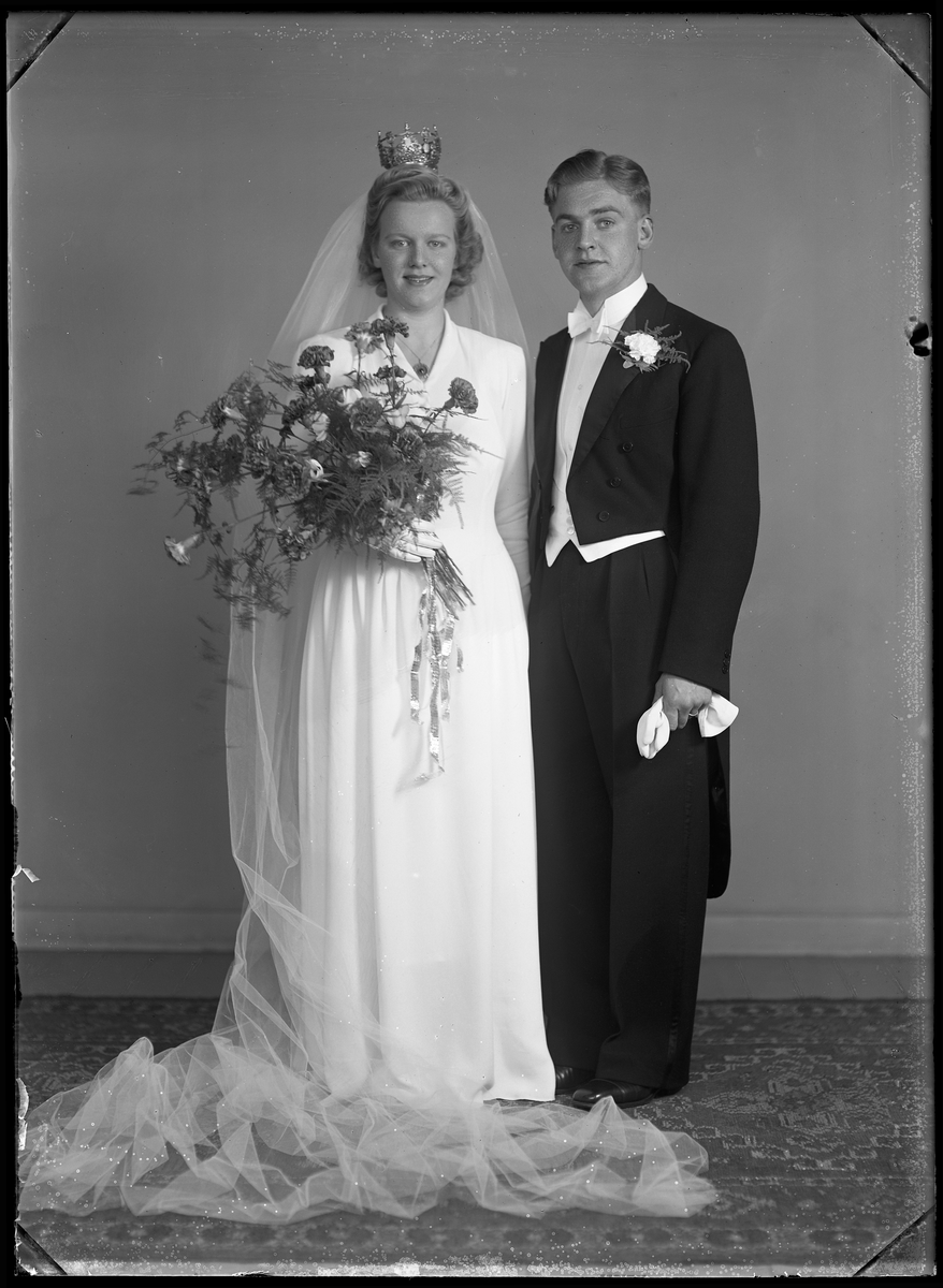 Bröllopsporträtt. Brudpar, Ingvar Eriksson, Riksbyggen 2 B.