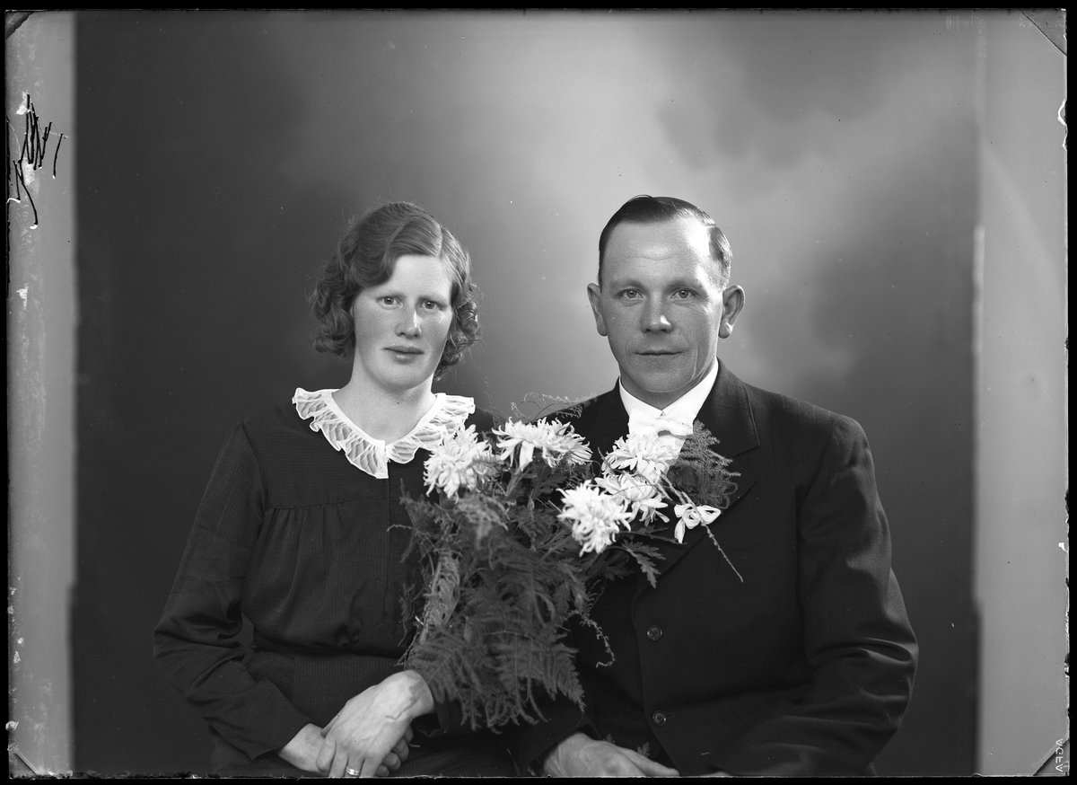 Bröllopsporträtt, brudpar. Erik Johansson, Kolbäck.