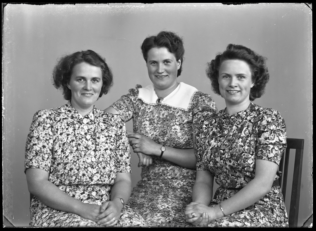 Grupporträtt, tre personer. Fru Svea Uddberg med systrar.