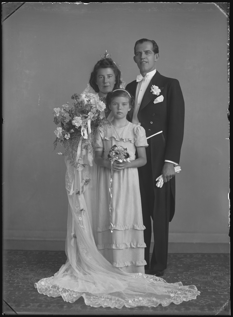 Grupporträtt. Brudpar och brudtärna. Åke-Adolf Andersson. Ur Gustaf Åhmans samling.