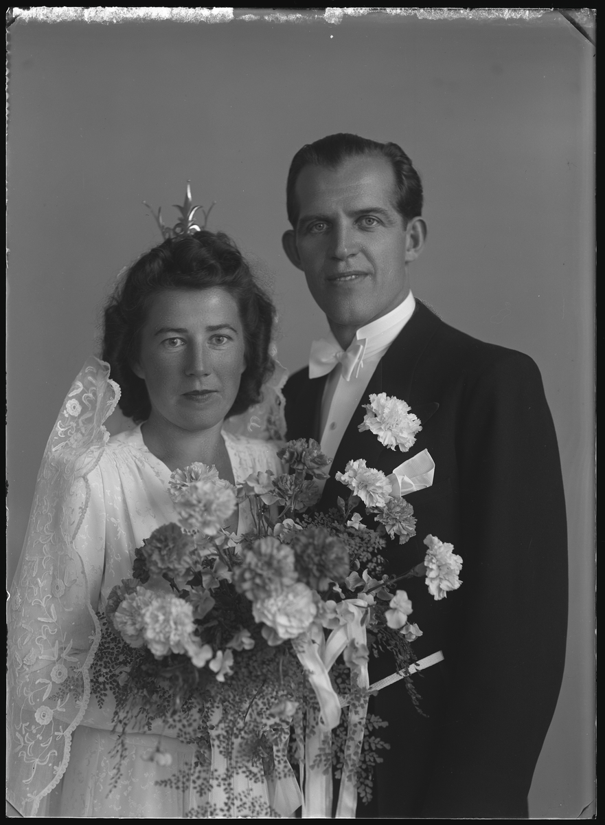 Bröllopsporträtt, brudpar. Åke-Adolf Andersson. Ur Gustaf Åhmans samling.