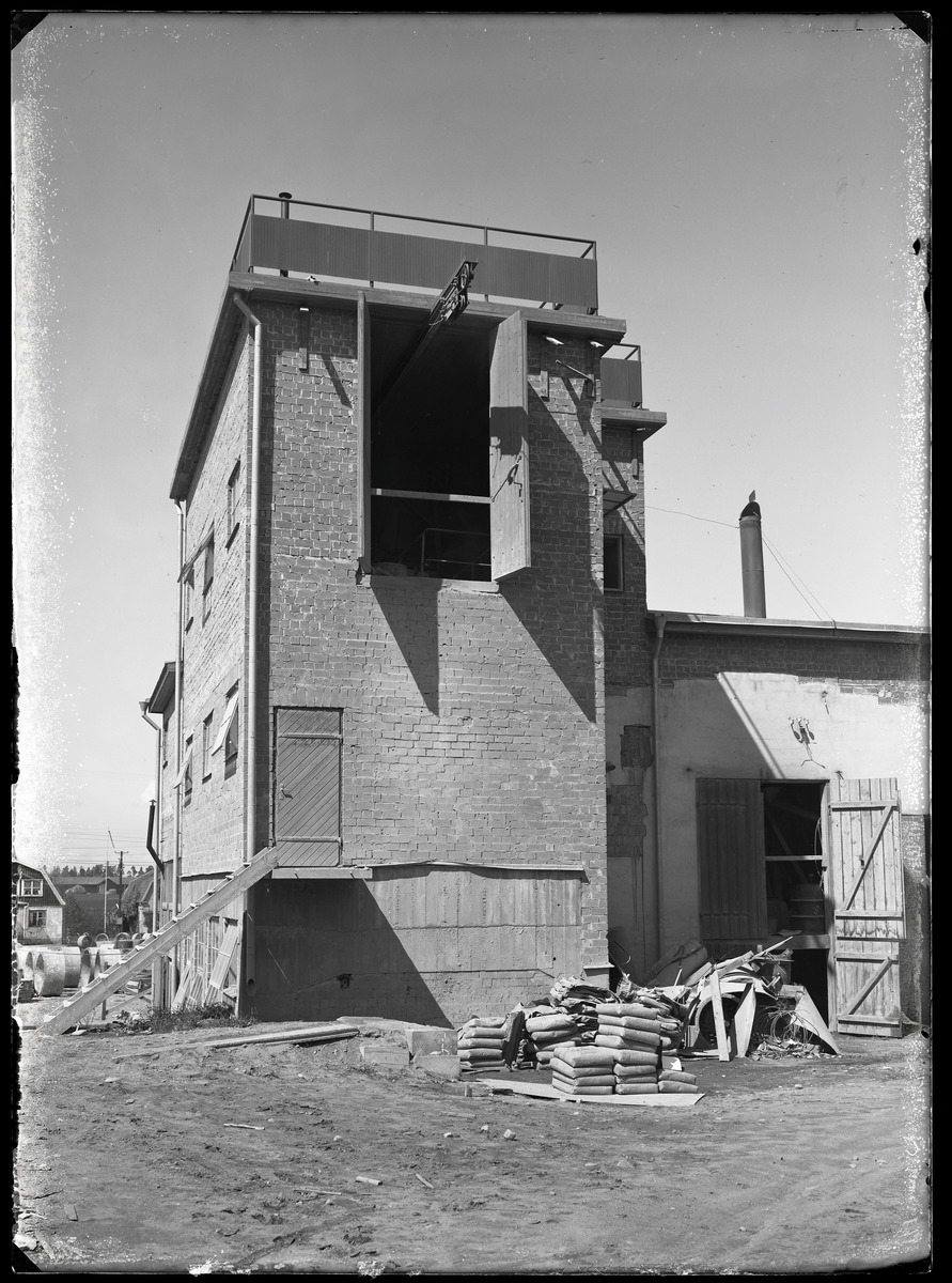 Titel: Vid cementgjuteriet, Landsfiskal Lundkvist, Kolbäck. Ur Gustaf Åhmans samling.