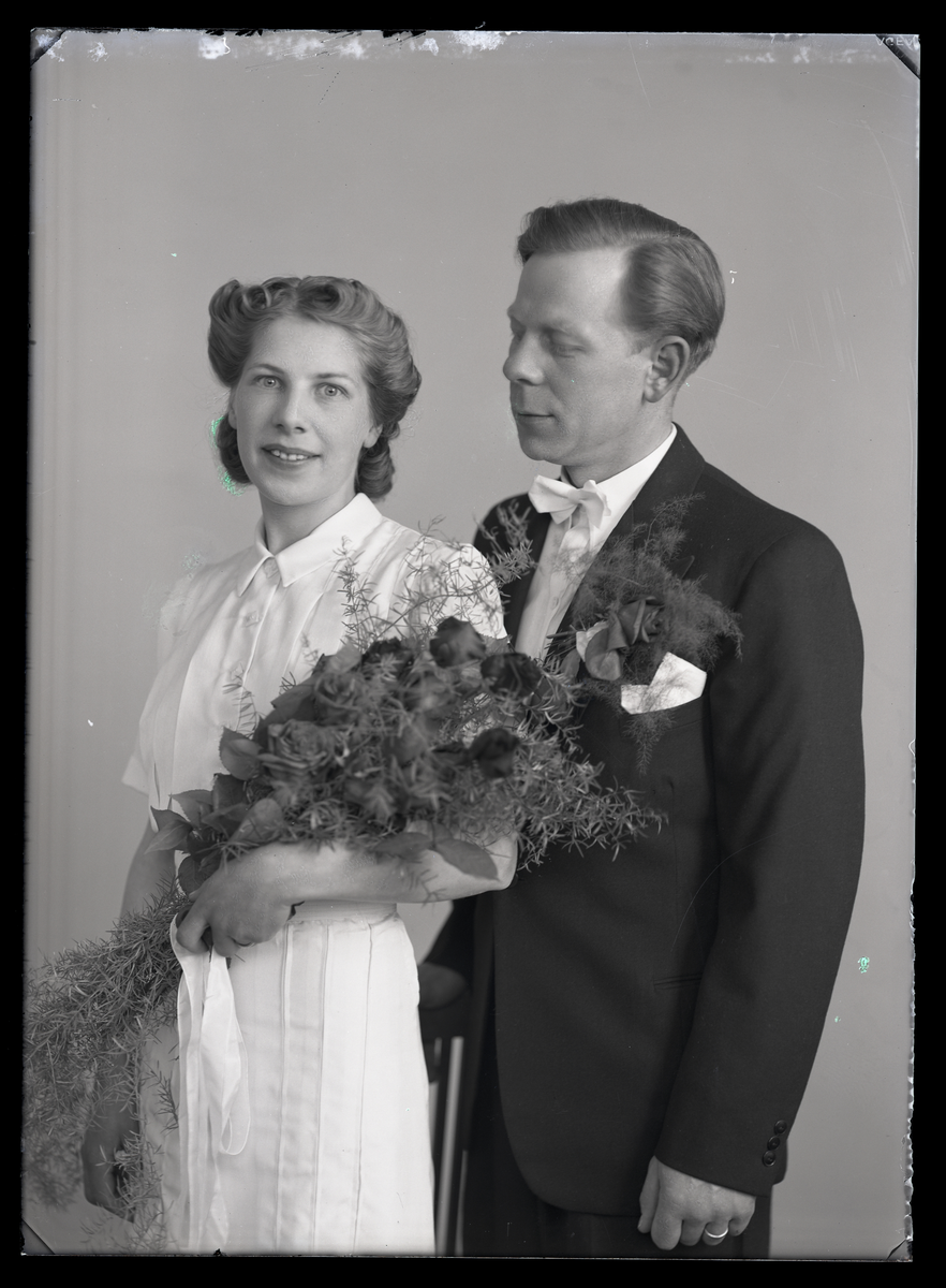 Titel: Bröllopsporträtt, Sigfrid Jakobsson, Kolbäck. Ur Gustaf Åhmans samling.
